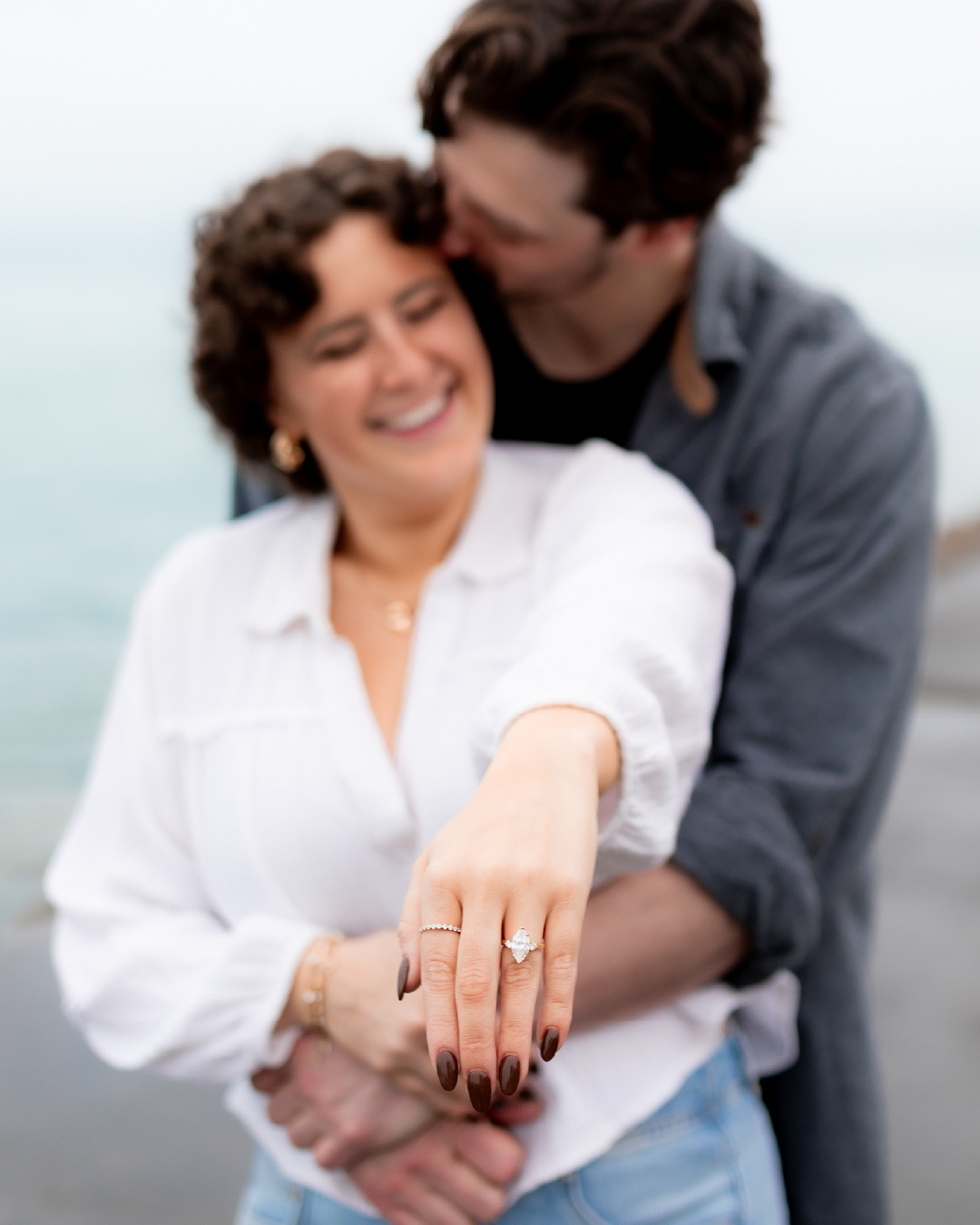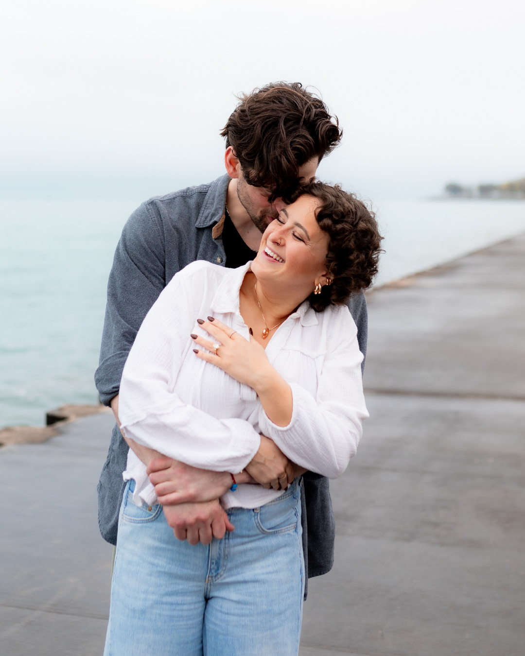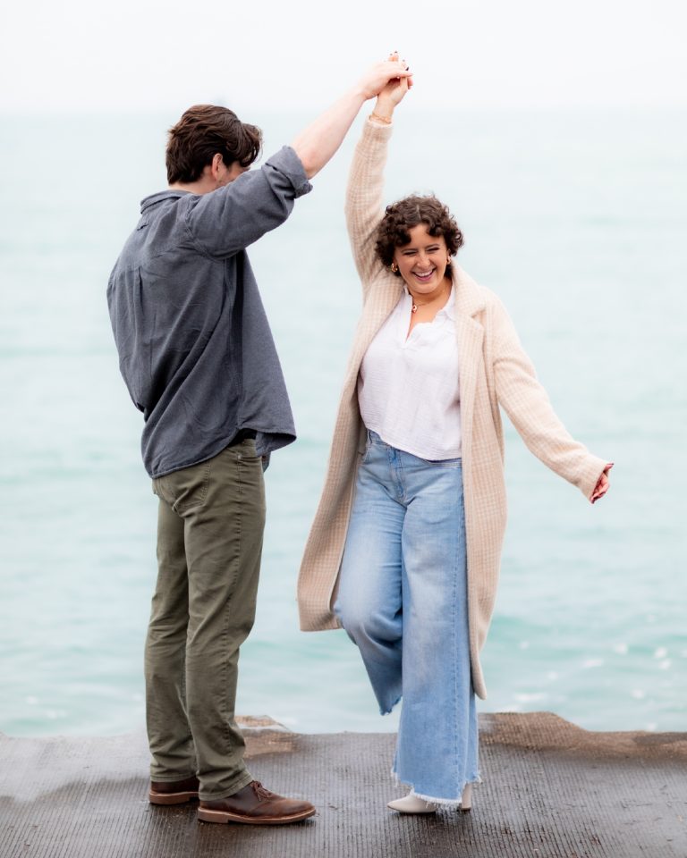 The ceremony is outdoors, adjacent to Lake Michigan at sunset, so expect a crisp fall breeze at the least.